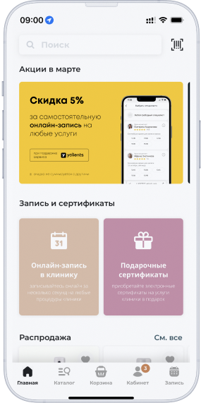 С помощью открытого API разработчики легко синхронизировали склад YCLIENTS в приложение с нашим интернет-магазином. Горжусь, что мы стали первыми, кто запустил подобное. Идея родилась сама собой: в нашей клинике можно купить косметику. Но не всегда нужный товар в наличии, или пациенту нужно время, чтобы обдумать покупку. Чтобы решить эту проблему, запустили собственный интернет-магазин и мобильное приложение.