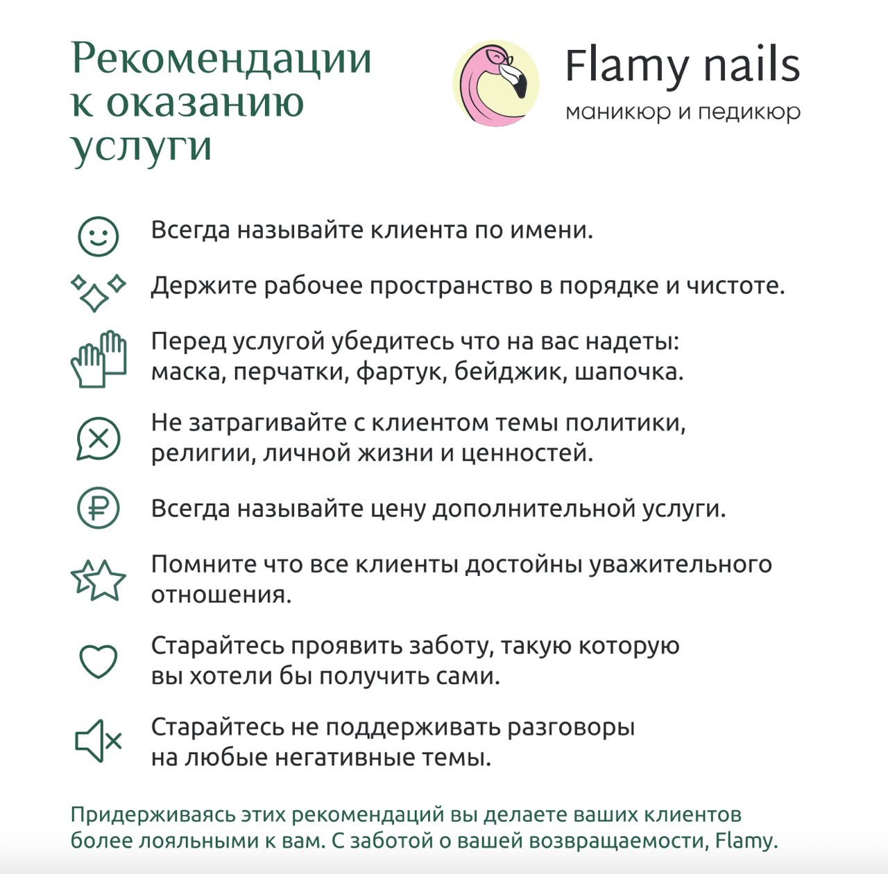 Кофе и конфеты, приятная музыка и легкий фильм для настроения — кажется, рецепт лучшего клиентского сервиса готов. Или нет? Что можно добавить к уже привычным способам позаботиться о гостях? «Флами Нейлз» поделились практическим гайдом. Читайте рекомендации и внедряйте их в работу!