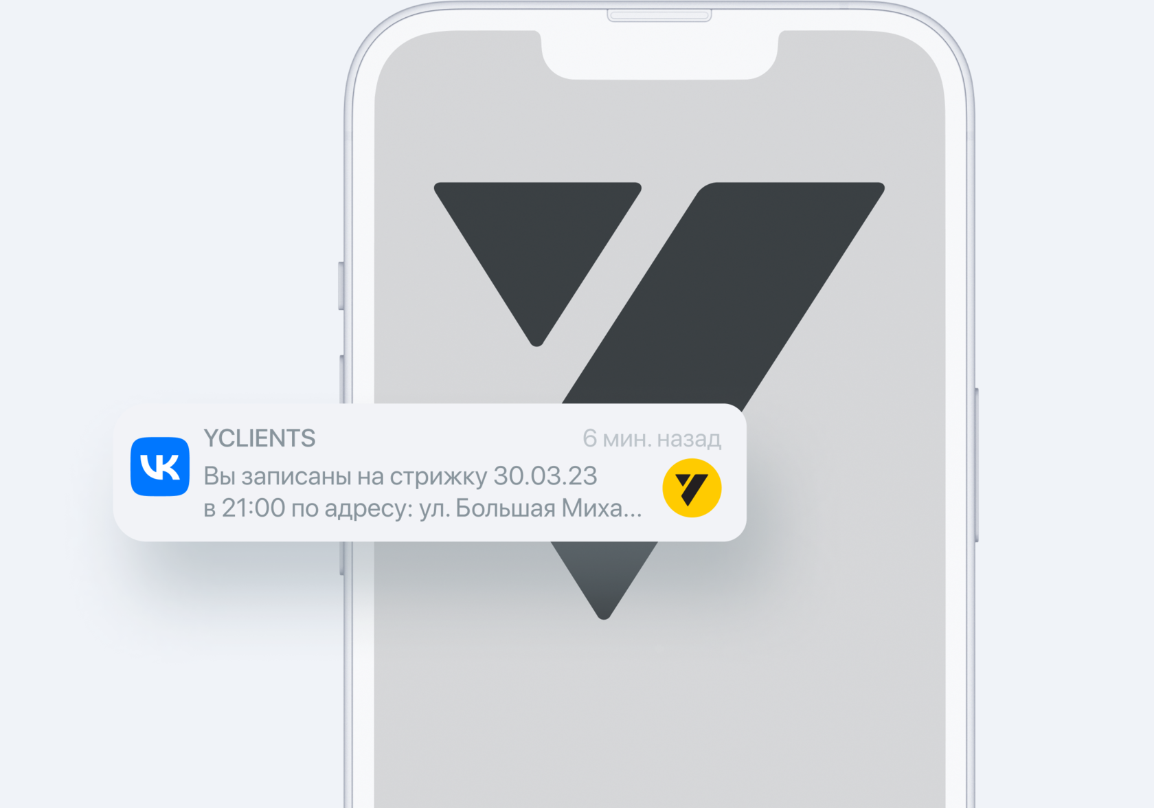 Аудитория соцсети ВКонтакте — 100 млн человек в сутки. Там точно есть ваши клиенты! Вы можете использовать уведомления приложения, чтобы общаться с аудиторией. Мы обо всем позаботились. Уведомления будут отправляться автоматически, если в журнале записи указан телефон клиента, к которому привязан аккаунт ВКонтакте. Подтверждайте записи, напоминайте о визите и предупреждайте об изменениях в расписании — клиенты точно заметят ваши сообщения.