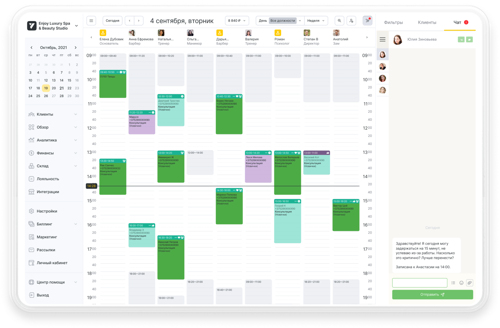 Чат всегда под рукой: в журнале записи и окне с деталями визита