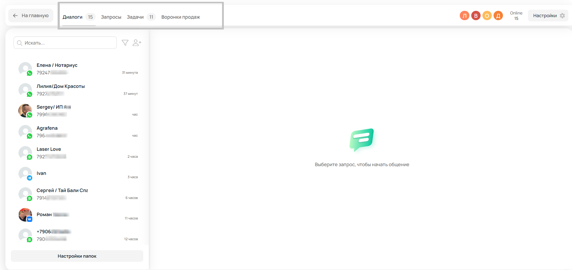 Диалоги — единый чат с клиентами